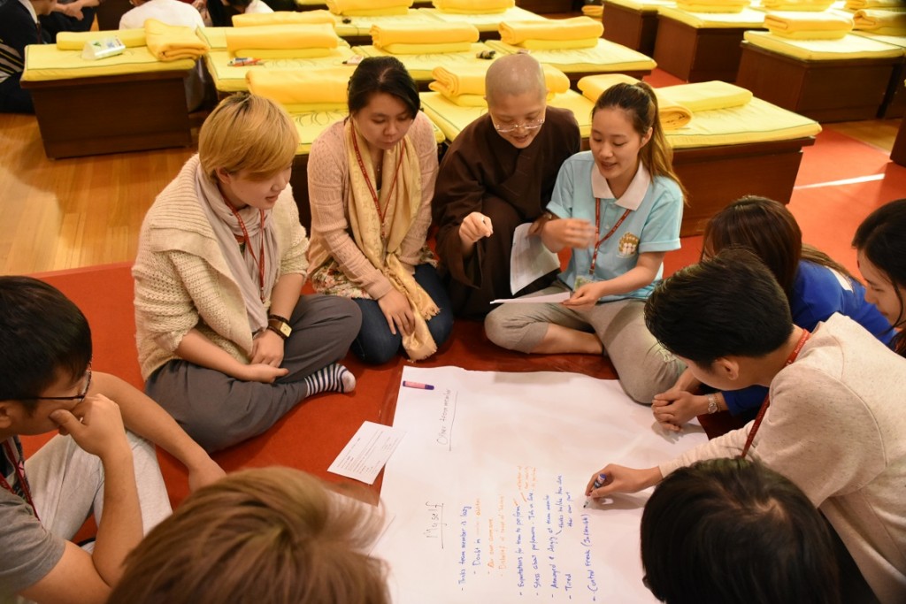 週日的青年團活動,透過住持法師的開示和小組討論把人際關係和佛法很有意義的聯繫在一起。 同時也開闊了自己思考問題的方向。20多年的慣性思考和習氣,很容易透過某些境界,用肯定句的方式把人事物貼了標籤、分好類。例如:難伺候的老闆、愛抱怨的同事、無止境的工作、無理取鬧的客戶……。但是這次住持師父的開示中,一連串的反問句——「情緒是真實的嗎?它會不會變? 色身是不是也在變?人會不會變? 如果是變動的,那麼這些還是真的嗎? 」 那一刻突然被驚醒,那些我深信是「真實」的感受和想法,原來一直在騙我。 色受想行識,是因緣作用下短暫的合成,本質是空!《心經》誦了不下百遍,卻從未想過「照見五蘊皆空」是可以用在生活中的!看來以後讀誦經書不光是看看就好,更重要是「信受奉行」,把佛法融入生活中。